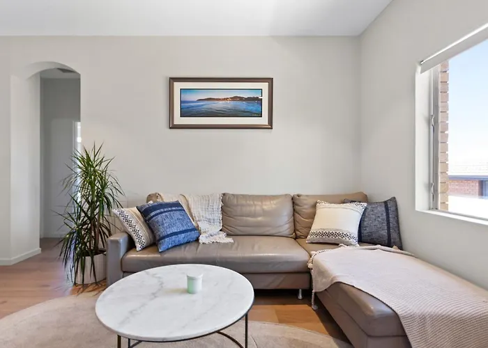 The spacious Top Floor Coastal Chic In Maroubra Sydney apartment is situated merely a 6-minute walk from Maroubra Junction Uniting Church and 10 km from Kingsford Smith airport.